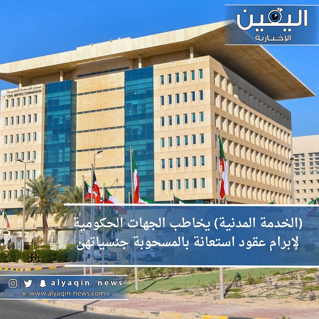 أعلن ديوان الخدمة المدنية اليوم الثلاثاء مخاطبة الجهات الحكومية كافة لمباشرة إبرام عقود الاستعانة بالموظفات المسحوبة جنسياتهن استنادا إلى المادة الثامنة من قانون الجنسية الكويتية.